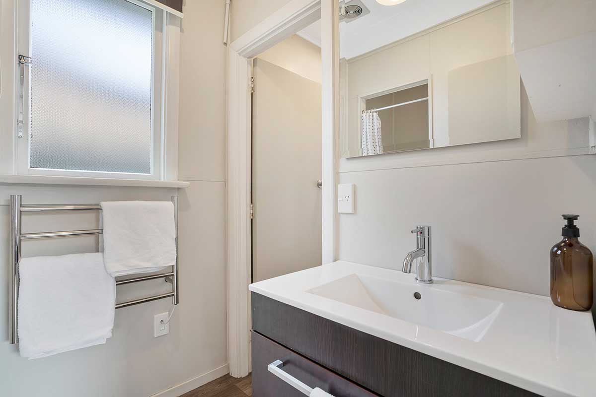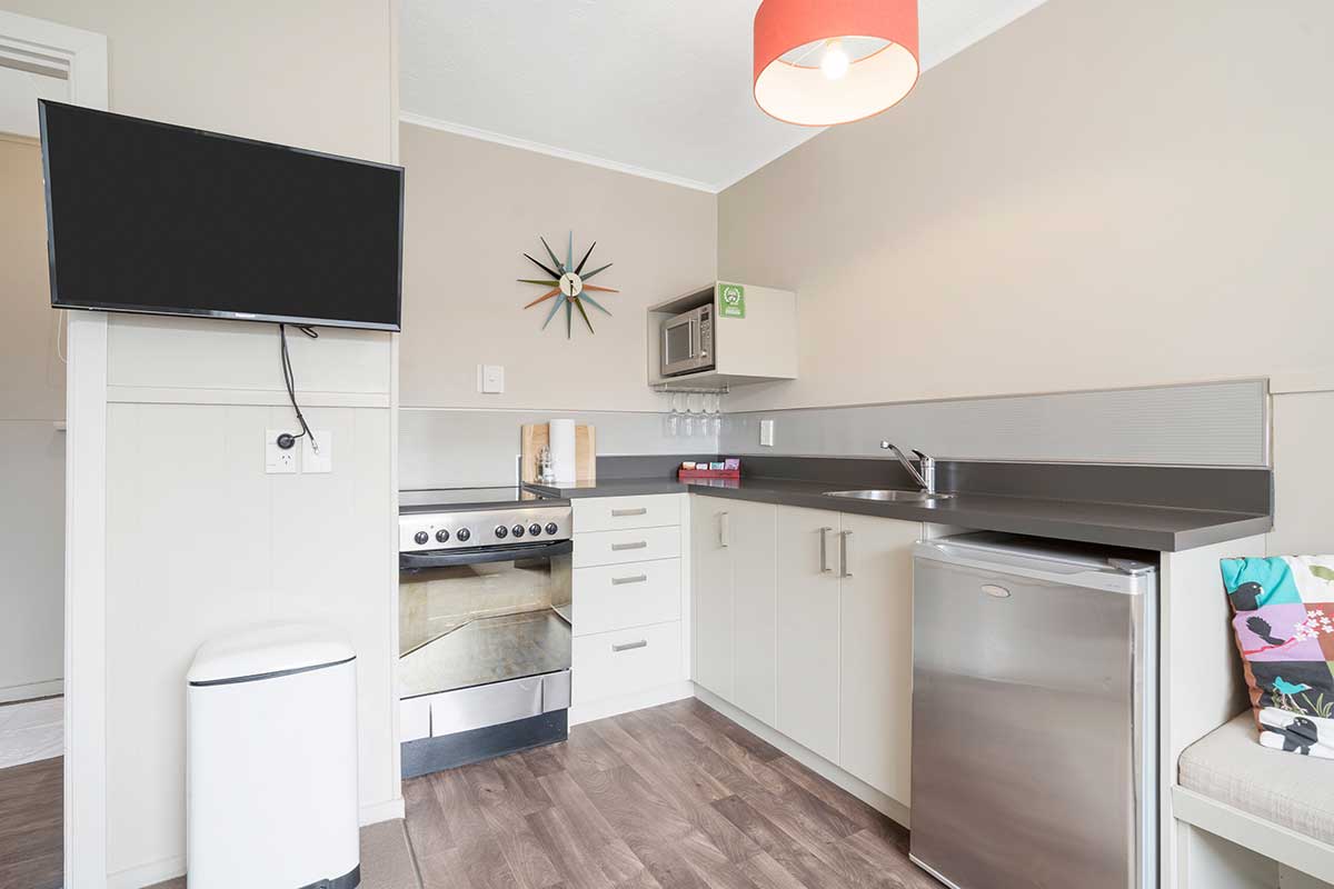 This cosy 2 bedroom chalet offers 2 bedrooms, one with a Double Bed and the other with 2 Single Beds. There is a fully equipped kitchen, a dining setting and a comfortable lounge area with a sofa and Smart TV. This makes it an ideal space for friends or families travelling together and offers the ability to be fully self contained.